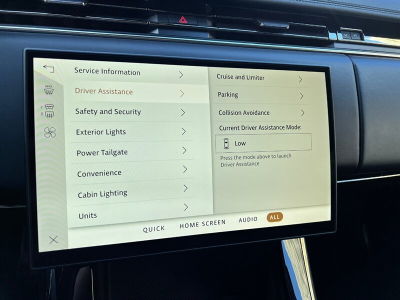 - Front wipers: rain sensing, speed sensitive, variable intermittent
